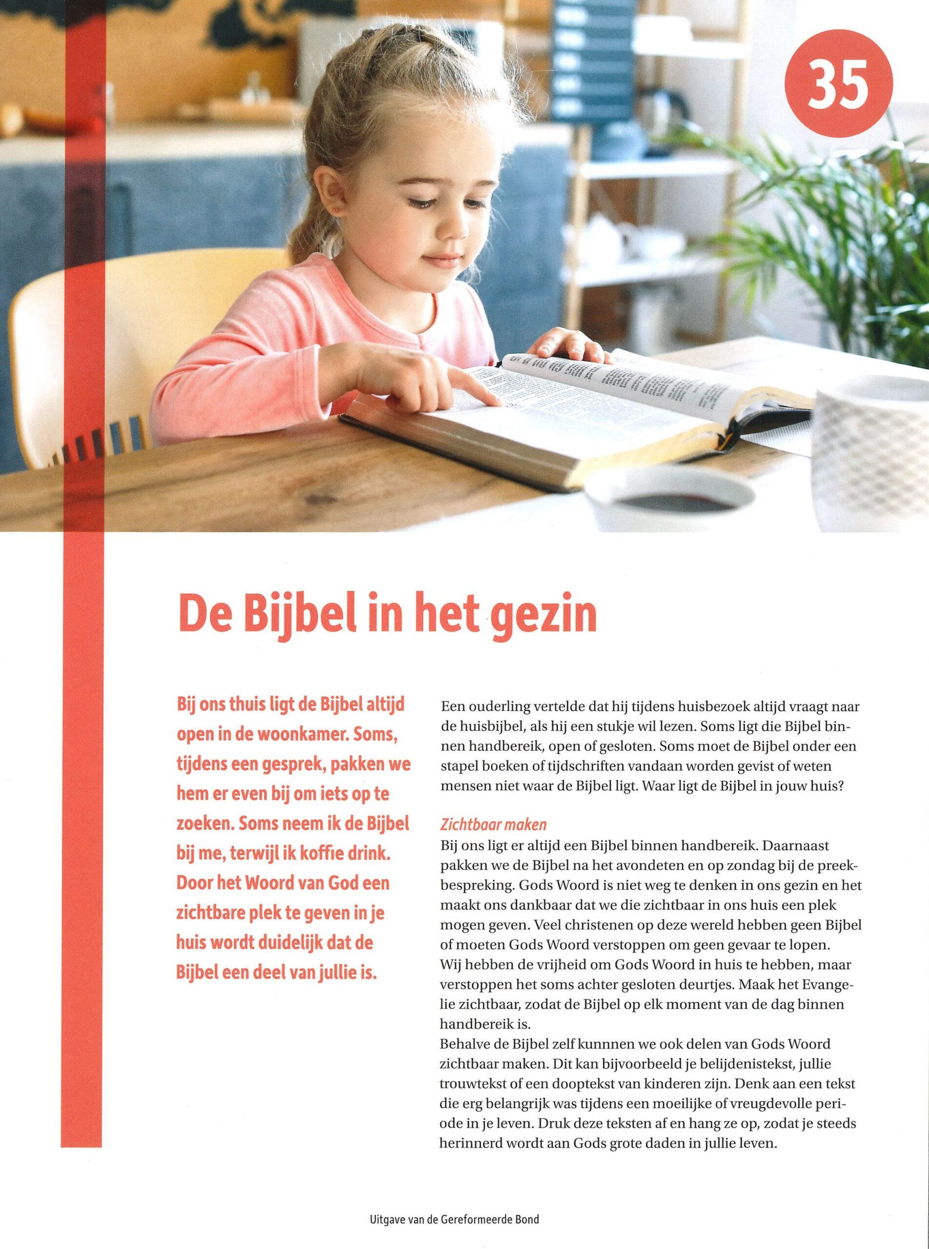 Bijbellezen is een belangrijk onderdeel van je leven als christen en dus ook van de geloofsopvoeding. Ouders en jongerenwerkers mogen aan kinderen voordoen hoe die de Bijbel kunnen lezen. In de themabrochure De Bijbel in het gezin, een uitgave van de Gereformeerde Bond, geeft Nieske Selles-ten Brinke concrete adviezen aan opvoeders.