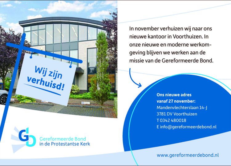 Het kantoor van de Gereformeerde Bond (en De Waarheidsvriend) is verhuisd.