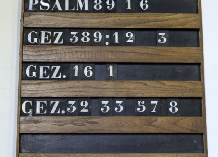 Beeld: Psalmbord in de Andreaskerk in Westeremden. Foto Wikimedia, hardscarf (CC BY-SA 3.0)